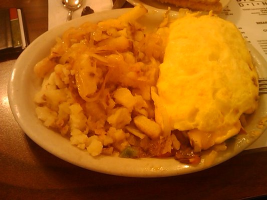 This is not corned beef hash, but it is a typical Big Al’s breakfast with hash browns made with fresh – never frozen – potatoes and a huge omelet. The coffee is great, too. And the servers.