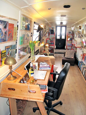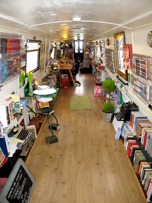 The bookstore which has caught my fancy today is the Book Barge (generally) moored in Staffordshire, UK. I love re-purposed buildings and a re-purposed houseboat – 57′ narrowboat – fills the bill.
