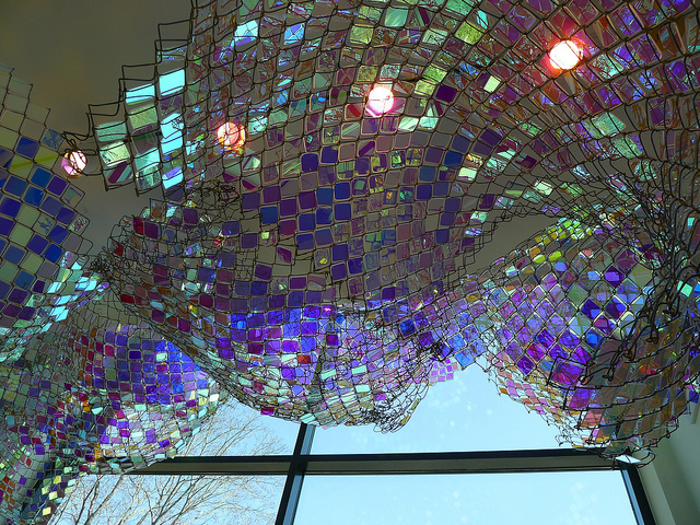 Using chain link fencing and colored acrylic discs, Park has created soft looking undulating, organic forms of characterized by ethereal colors that belie the underlying materials that make up their construction. More here.