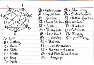 What happens when you mix any two of the seven deadly sins? Jessica Hagy has worked it out above.