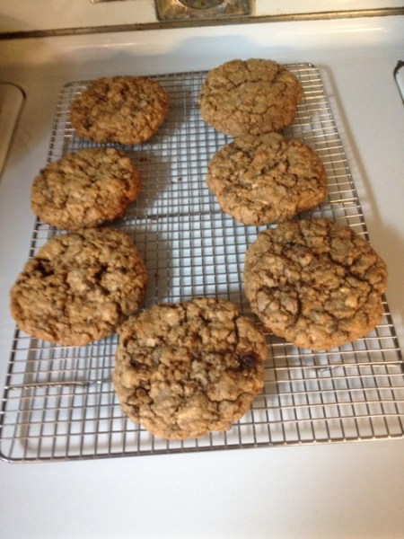 Today is my birthday – many of my friends also have birthdays this week. To help us all celebrate, I baked up, with the help of my lovely assistant, HMS Defiant, The Best Cookies in the World – or, Chocolate, chocolate, chocolate, cherry, oatmeal cookies. And they really are TBCITW