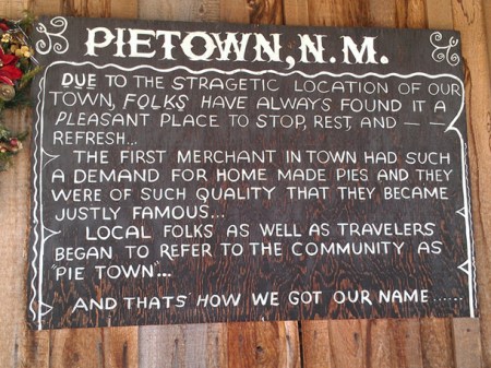 The second Saturday of September is Pie Day in Pie Town, New Mexico. This small community (population 186) has earned a reputation for offering excellent pies for sale. It started as a crossroads community – a stop for people traveling west – and is now popular with tourists. This Saturday is Pie Day. I would like to stop by the Pie-O-Neer cafe where they serve pie, “that’s it.” It sounds like my kind of place. Here is a story about the town at Cowboys & Indians magazine.