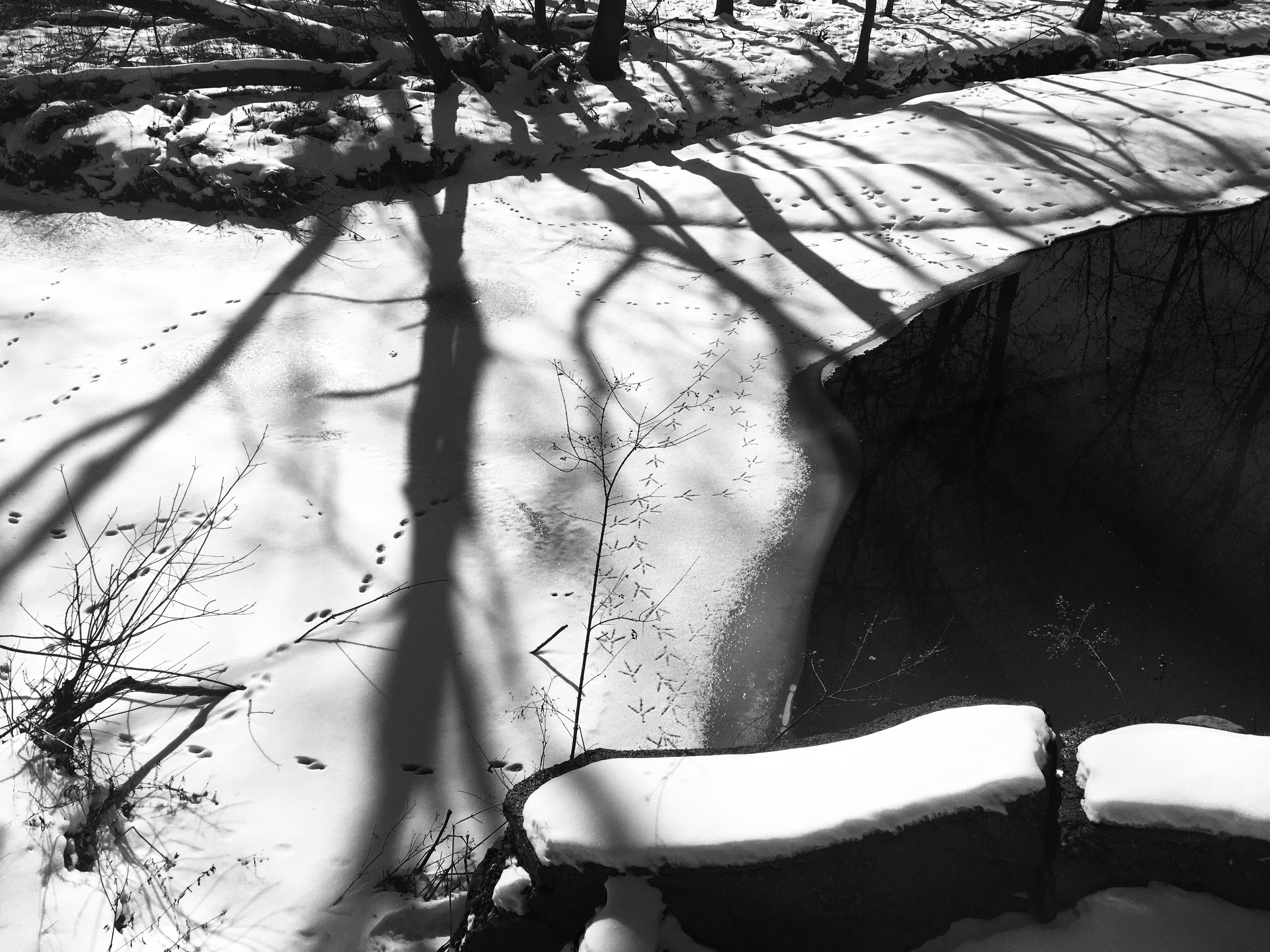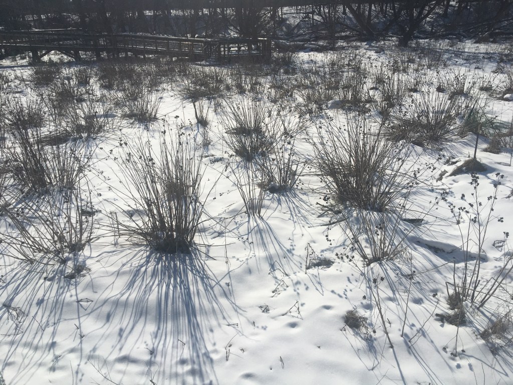 We had a bright, sunny (cold) day last week and took a walk in the park. Everything was quiet, but it was interesting to see the critter highways in the snow…