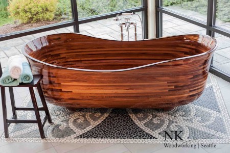 Nathie Katzoff has a background in shipbuilding and restoring. He has turned his expertise to designing custom wooden bathtubs which are beautiful, durable and created from sustainable wood. Unfortunately for me they come with a price tag of ~$30,000, so I will just dream of sailing away in one of these in my bathroom.