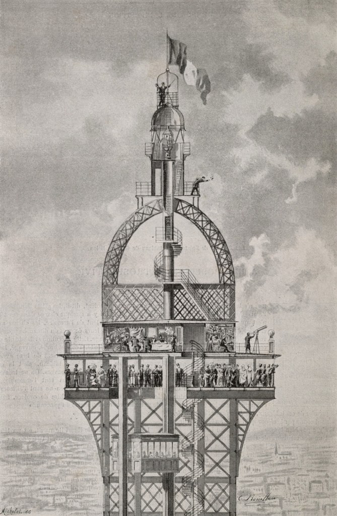 Buro Gustave Eiffel designed his iconic and eponymous tower in DATE. At a little over 1000 feet in height, the tip of the tower offered unobstructed views of Paris. Wanting to enjoy the panorama, Eiffel constructed a cozy private apartment for himself just under the tip of the tower. It included a living room, bathroom and kitchen area, but not a bedroom. Eiffel used the apartment as an office and a place for scientific study.