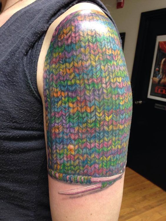 I have been sorting through my yarn collection, stash, hoard . . . and then I came across these fiber-inspired tattoos