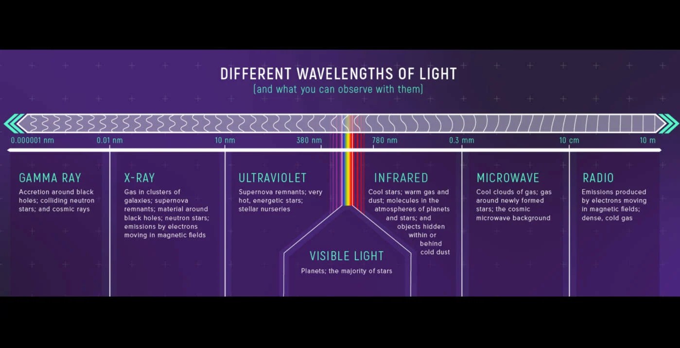 Different wavelengths of light. Spectroscopy can be used to study interactions between matter and any form of light, from visible light to gamma rays, X-rays, ultraviolet light, infrared light, microwaves, and radio waves.James Webb Space Telescope masters infrared spectroscopy and has the ability to reveal infrared spectra of almost any type of object or material in space with unprecedented detail.