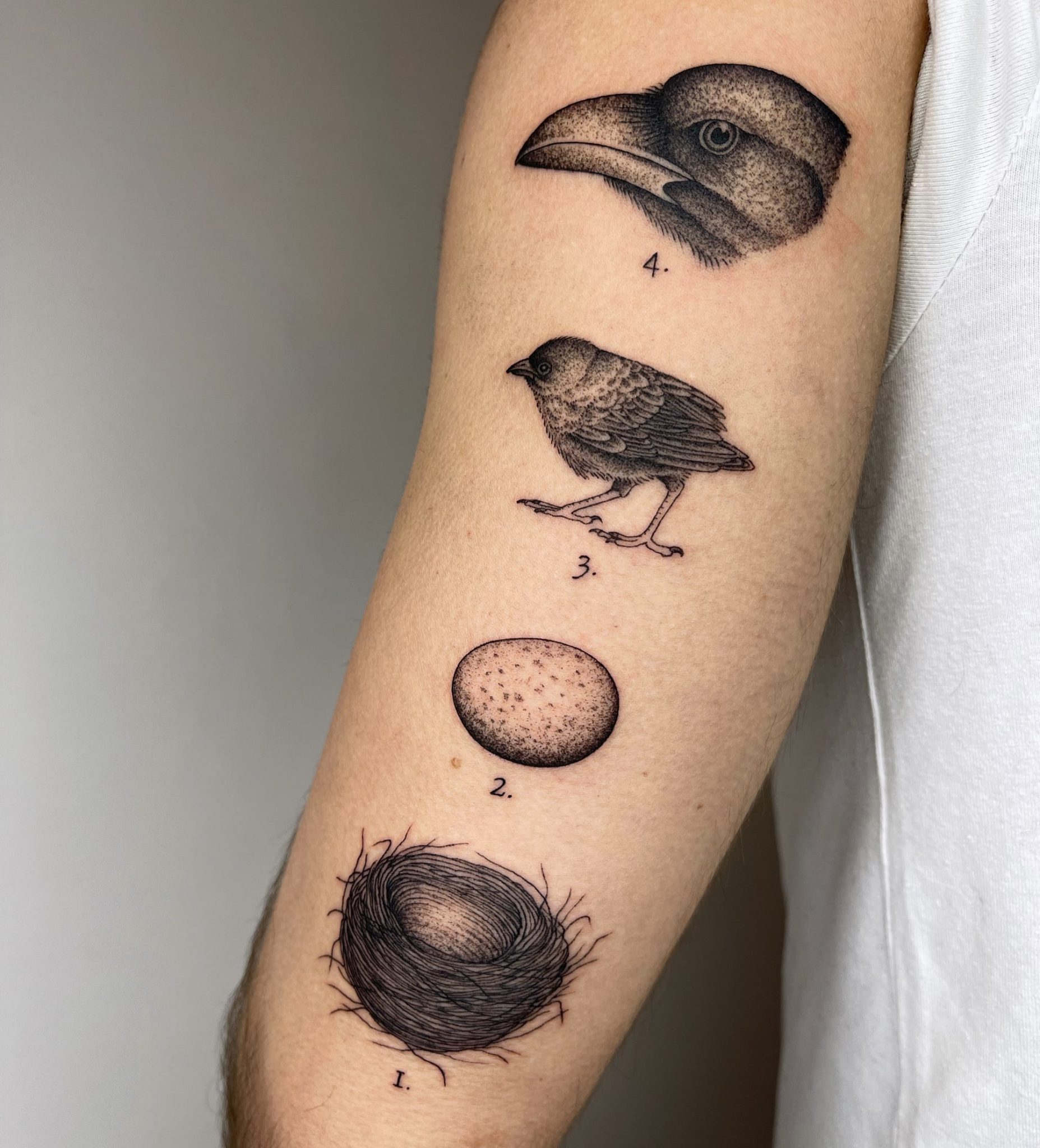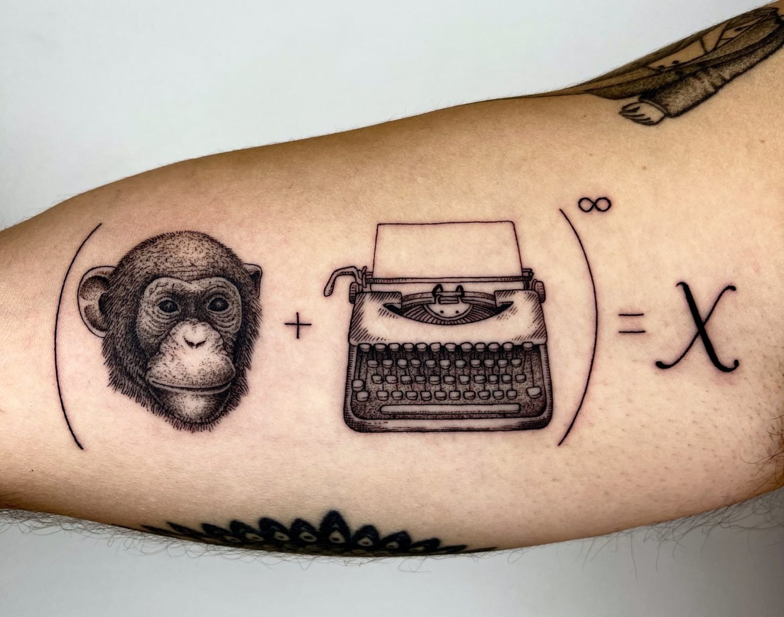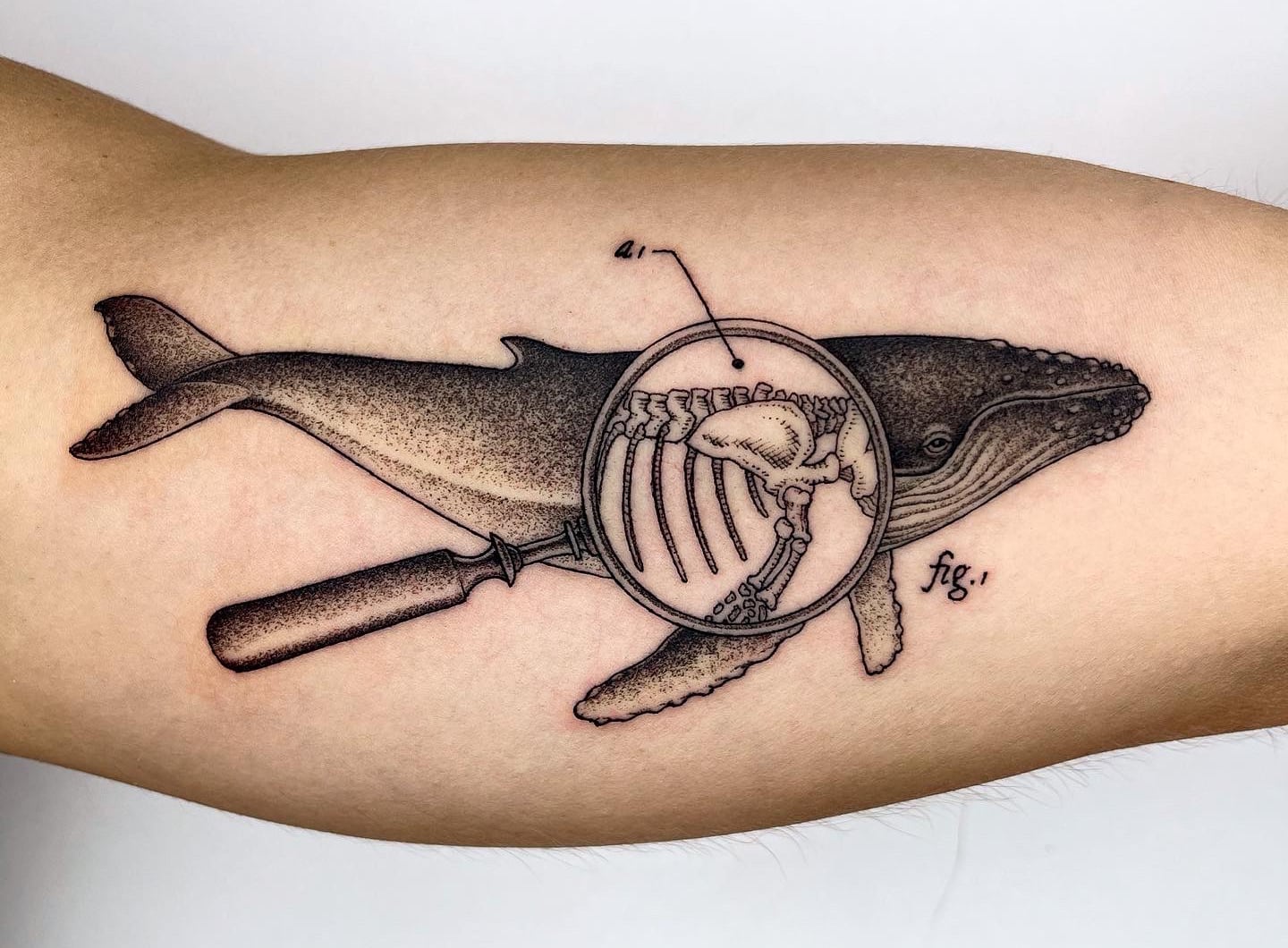 “Bologna-based artist Michele Volpi (previously) inoculates his monochromatic tattoos of anatomical figures and biological diagrams with a dose of the surreal. Working in black ink, Volpi renders exquisite scientific illustrations across botany, astronomy, physiology, and chemistry with precise detail. He uses intricate linework and stippled shading to create realistic renderings of human skeletal systems and weather cycles, while skewing the scale or pairing seemingly disparate subject matters to achieve the more unusual qualities.” – Colossal