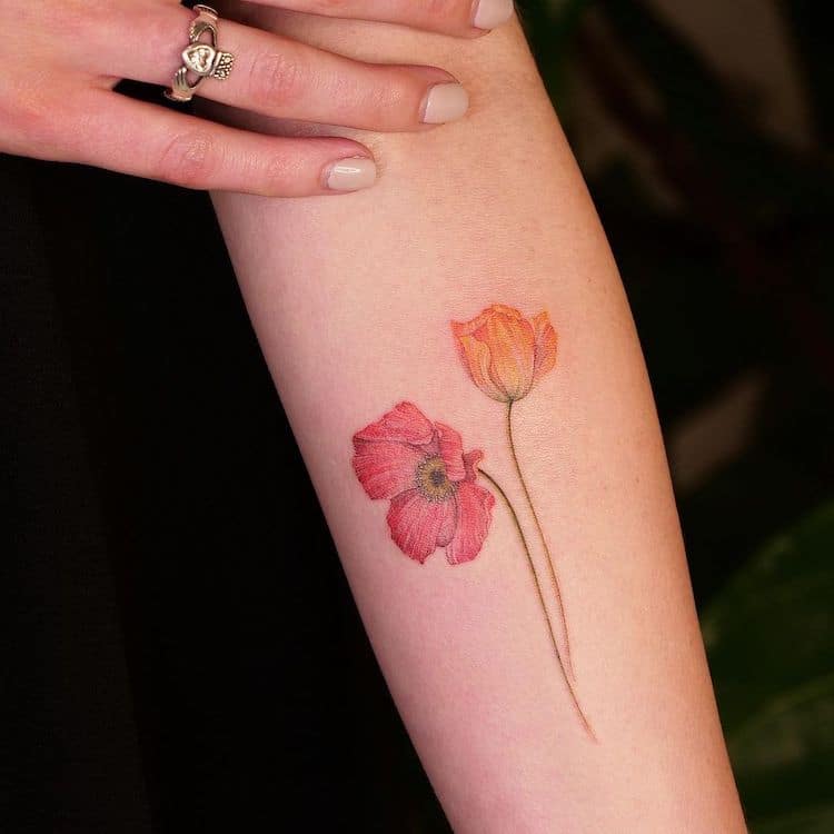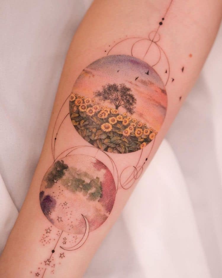 Using delicate color and very fine needles, artist Eva Karabudak creates delicate tattoos based on art and nature. See more at My Modern Met.