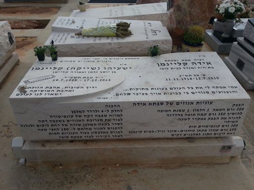 I wish I could read Hebrew. Ida Kleinman’s family loved her nut rolls so much that they inscribed the recipe on her headstonein Rehovot Cemetery, Israel. With strawberry jam, cinnamon sugar and ground pecans, they sound like rugelah to me. Yum.