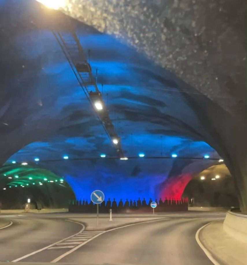 To quote Atlas Obscura: “The roundabout links the capital city of Tórshavn to both sides of the Skálafjørður fjord. Not only is it extra-convenient (cutting down travel time between Tórshavn and Runavík from over an hour to around 16 minutes), it’s also a feast for the senses. At its center stands a sculpture created by local Faroese artist Tróndur Patursson. Color-changing lights on a central support structure illuminate a piece of steel that Patursson shaped to represent people participating in a traditional Faroese chain dance. There’s even music, composed especially for this unique driving experience—just tune your radio to 97.0 when you drive through the tunnel.”