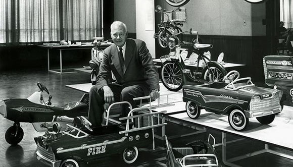 He was on the faculty of the Cleveland Institute of Art and he commuted to the school from his Cleveland Heights home.  It was reported that he kept count of the items he designed that he encountered on his commute, “One time, while driving to school, he said he counted 38 items he had designed. Lamps, bicycles with streamers, bells and banana seats, tricycles, now all collector’s items.” (ref. FreshWater Cleveland)