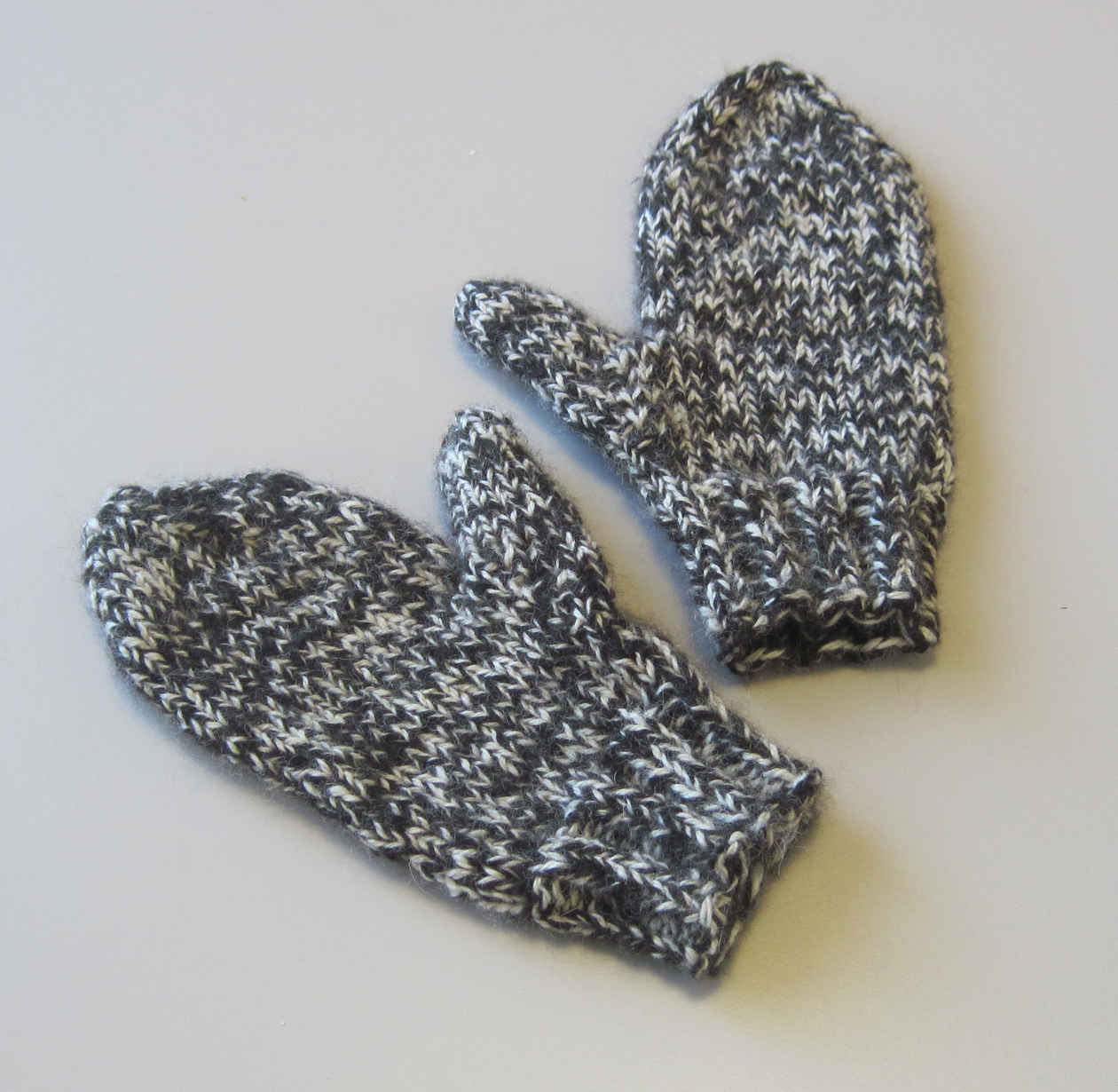 I did acquire some yarn. I love that the skeins are labeled with the name of the animal from which it came. So I have a skein of yarn from Pinky (creamy white) and one from Black Diamond (dark brown black). I am working on mittens – with the yarns mixed. Later, I may knit some in a single color, or in some other combination. I will probably post the mitten pictures when they are completed.