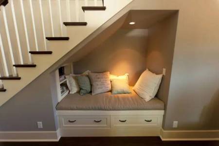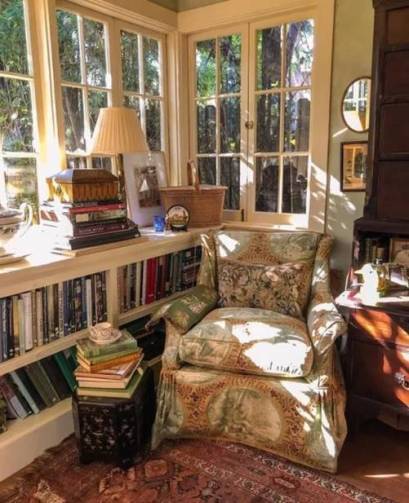 I recently read about a house in Japan that features an inclined wall of bookshelves. The slant prevented the books from falling off the shelves in case of an earthquake (usually), and was constructed so that one can climb up the shelves to find a particular book. I thought it was genius.