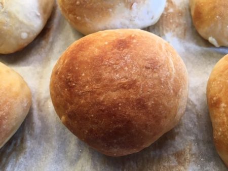 Form each roll into a ball and place on a parchment/silpat lined baking sheet. I have some big baking sheets, so I can get all 12 on at once – but I’ll bet if you crowd them a little, it will still work.