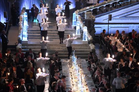 Nobel banquets have been held since 1901, and each year, the menu is exquisite. That’s to be expected: Some of the world’s most lauded people, not to mention Swedish royalty and dignitaries, are in attendance. In the first few years, the food was mostly French-style, the cuisine of the elite. Only later in the century did Swedish dishes and ingredients take center stage, with filet of sole being replaced by filet of reindeer. But until recently, there was one constant: For dessert, dozens of waiters descended the grand staircase with trays of Nobel ice cream and sparklers, a fitting accompaniment to the Nobel Prize’s explosive origins.