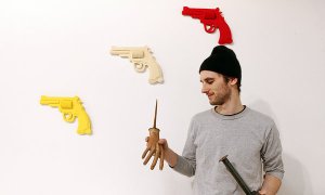 March 8, 2012Gunsmoke, knitting, felting, explosions, blades . . . Thanks to Rethoryke for this reference to a show at Present Company in Brooklyn called “Threat: Objects for Defense and Protection.”
