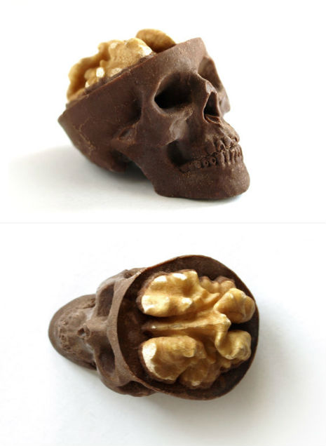 October 31, 2012Chocolate skulls with walnut brains on etsy.