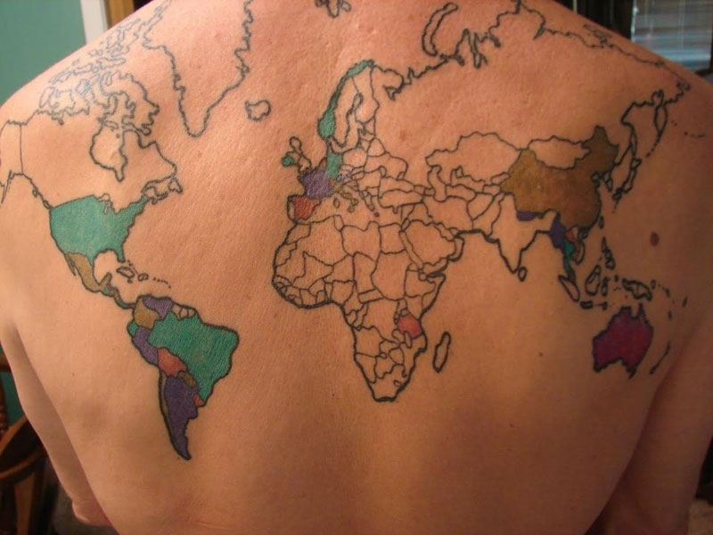 I don’t know if this is really a tattoo or not, but it is interesting. Maps and charts have always fascinated me. I was our family’s navigator when we went on trips. I was the only one who was interested in reading a map. I remember a trip to Pittsburgh when my father refused to ask directions, but just blithely crossed every bridge he came to. (Have you ever been to Pittsburgh?) We never got home.