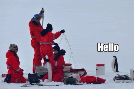 With the absence of land predators at the South Pole, the penguins there are unafraid and curious about the giant orange penguins that sometimes visit – and maybe need a little help.
