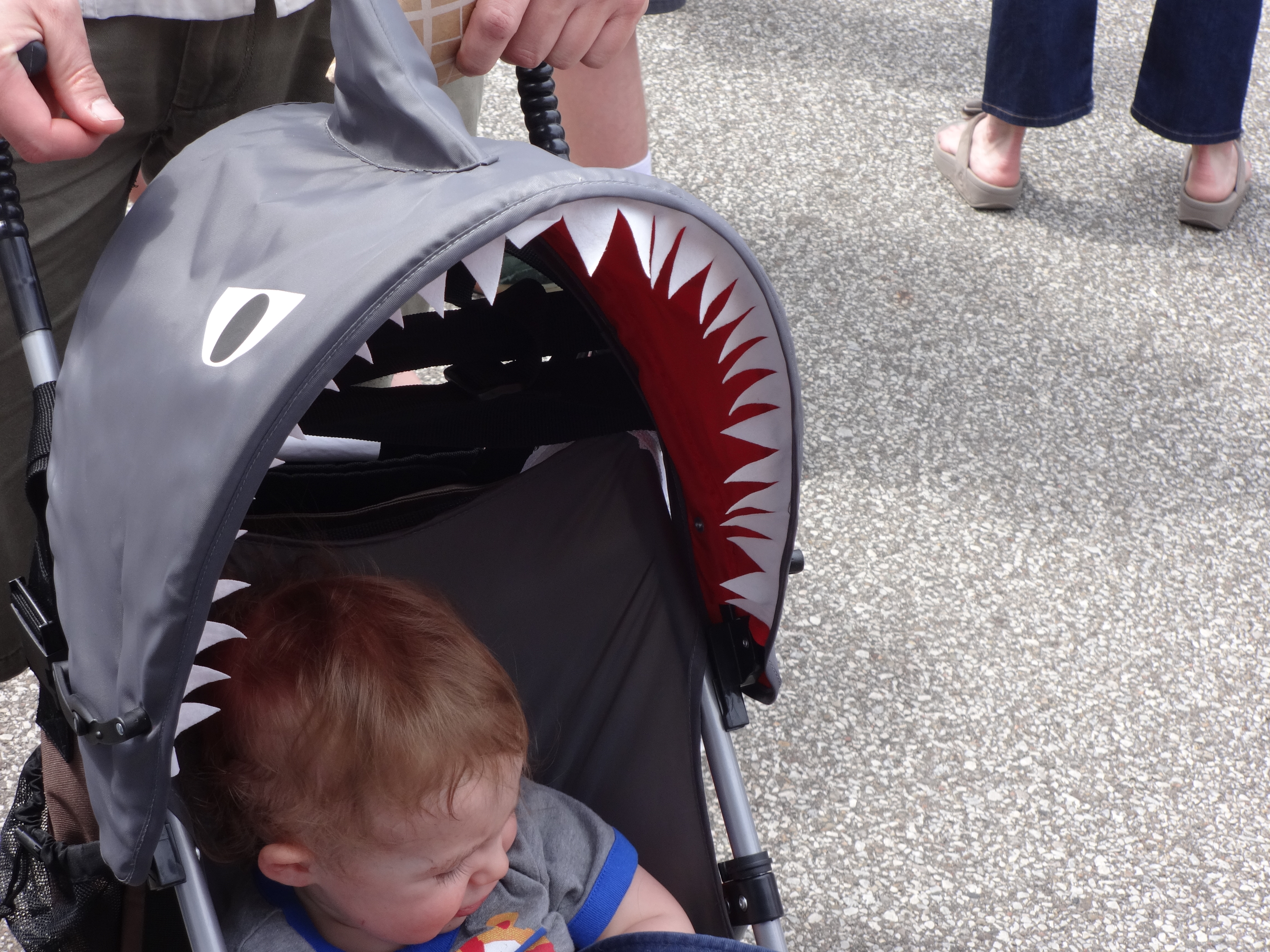 A poor child being devoured by a shark.