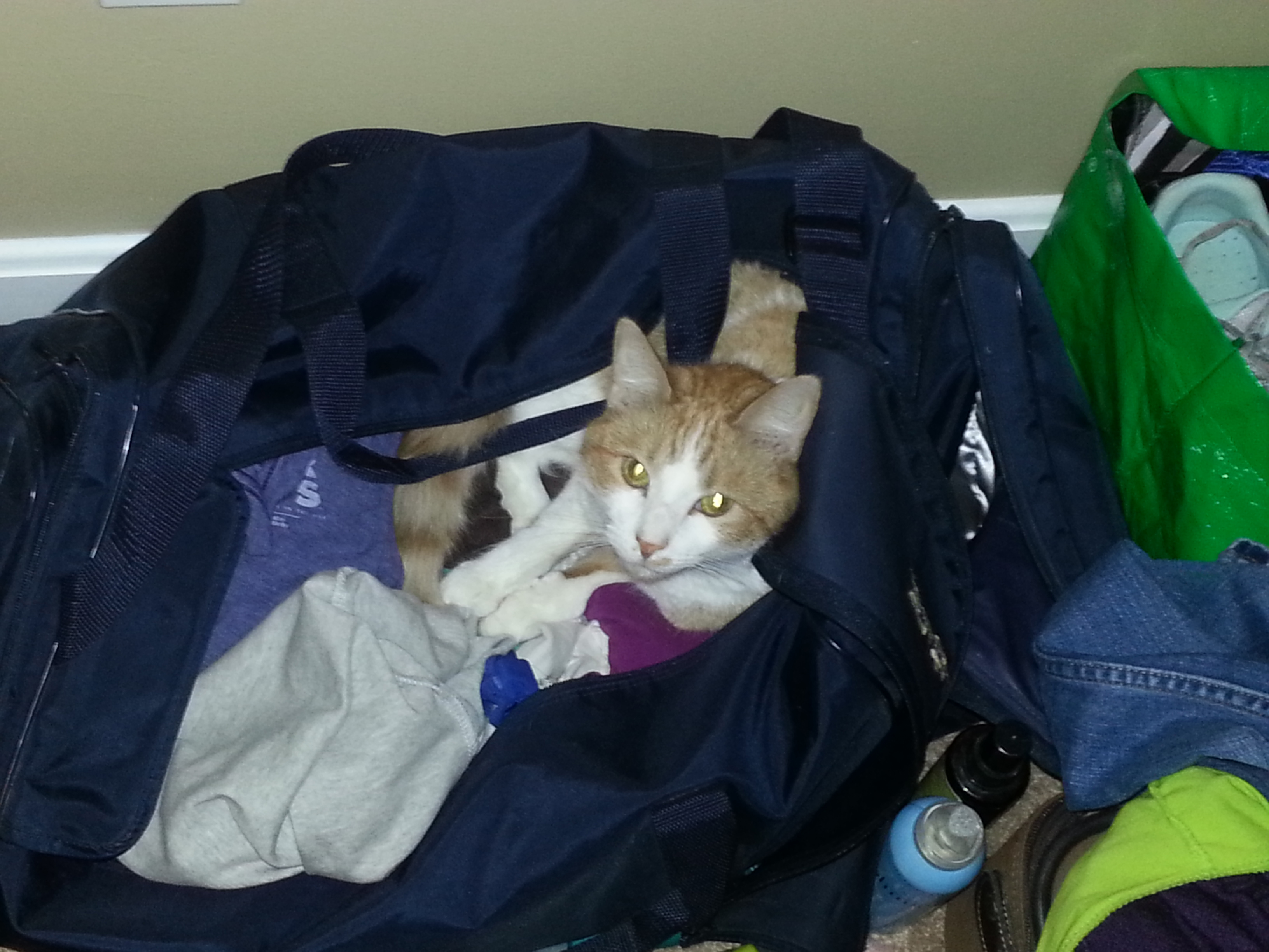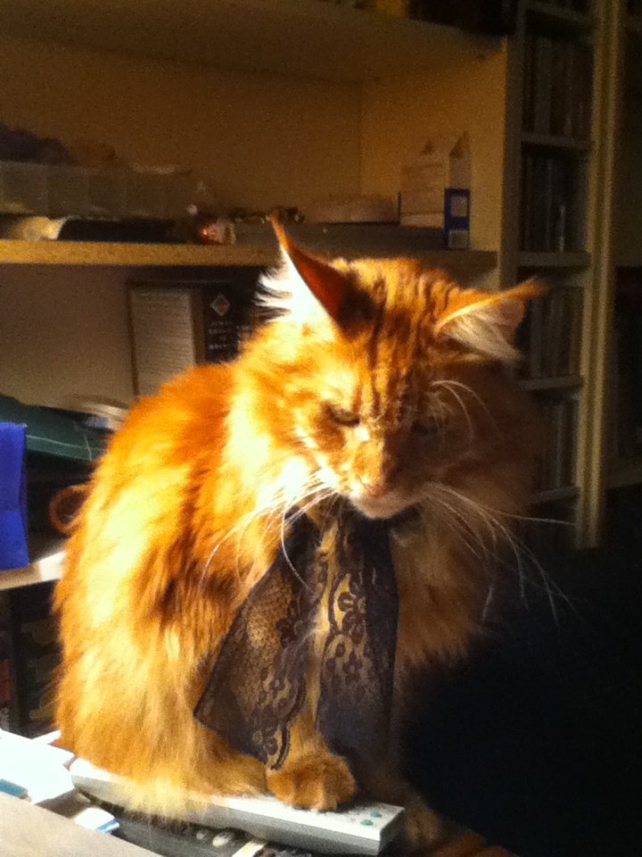 They are both Maine Coon cats and are still growing. Sammy is 2 years old and Hobbes is only 9 months old. They are terrific companions for each other and are great fun to watch.
