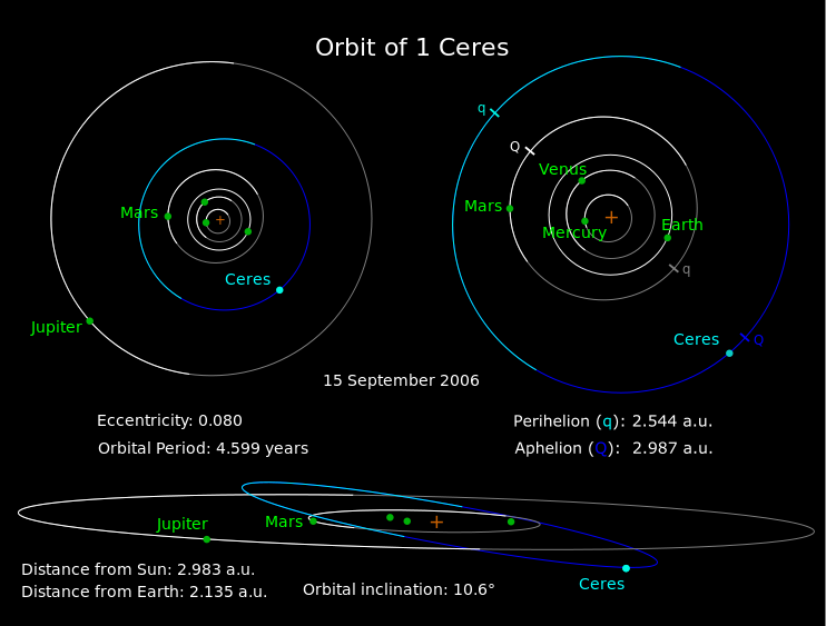 This is where you can find Ceres. It is remarkable for a number of reasons, not the least of which is because scientists suspect there is a significant amount of water present on Ceres under a layer of ice.