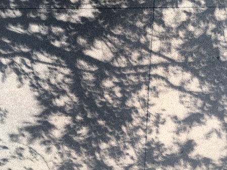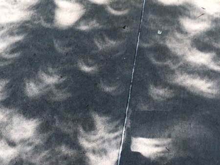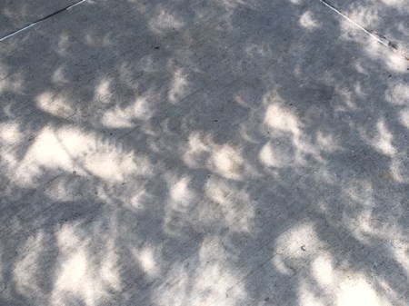 These are some indirect pictures of the shadow of the moon and the sun reflected through the leaves. This was about the time of the maximum extent of the eclipse here in Cleveland.