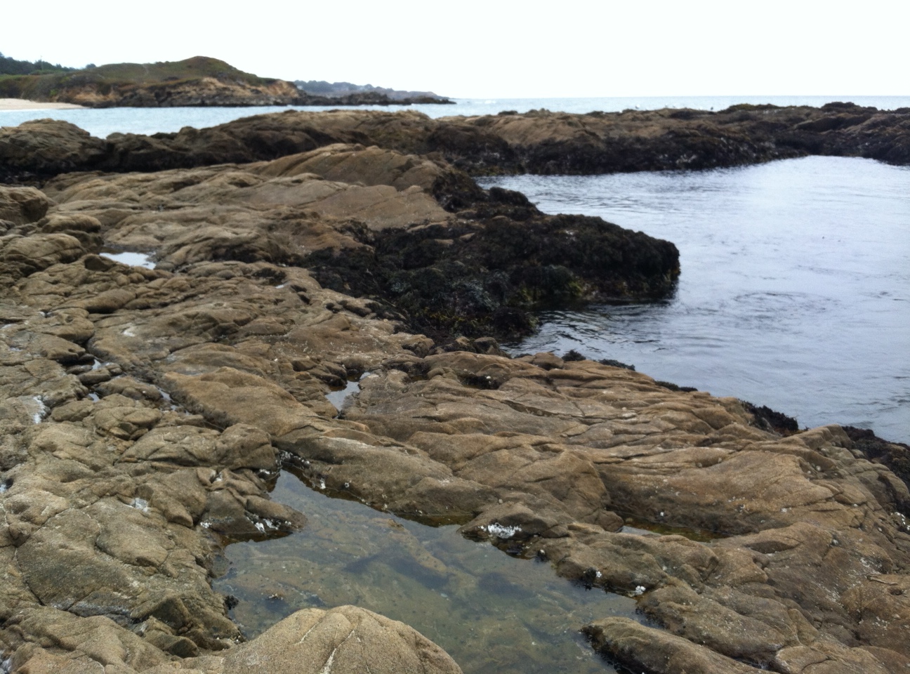 We are on the road – west coast this time. This afternoon we spent some time poking around in the tide pools at Bean Hollow State Beach. Saw crabs in many colors, large and small, limpets, hermit crabs, cormorants, grebes, etc. It was foggy, but fun.